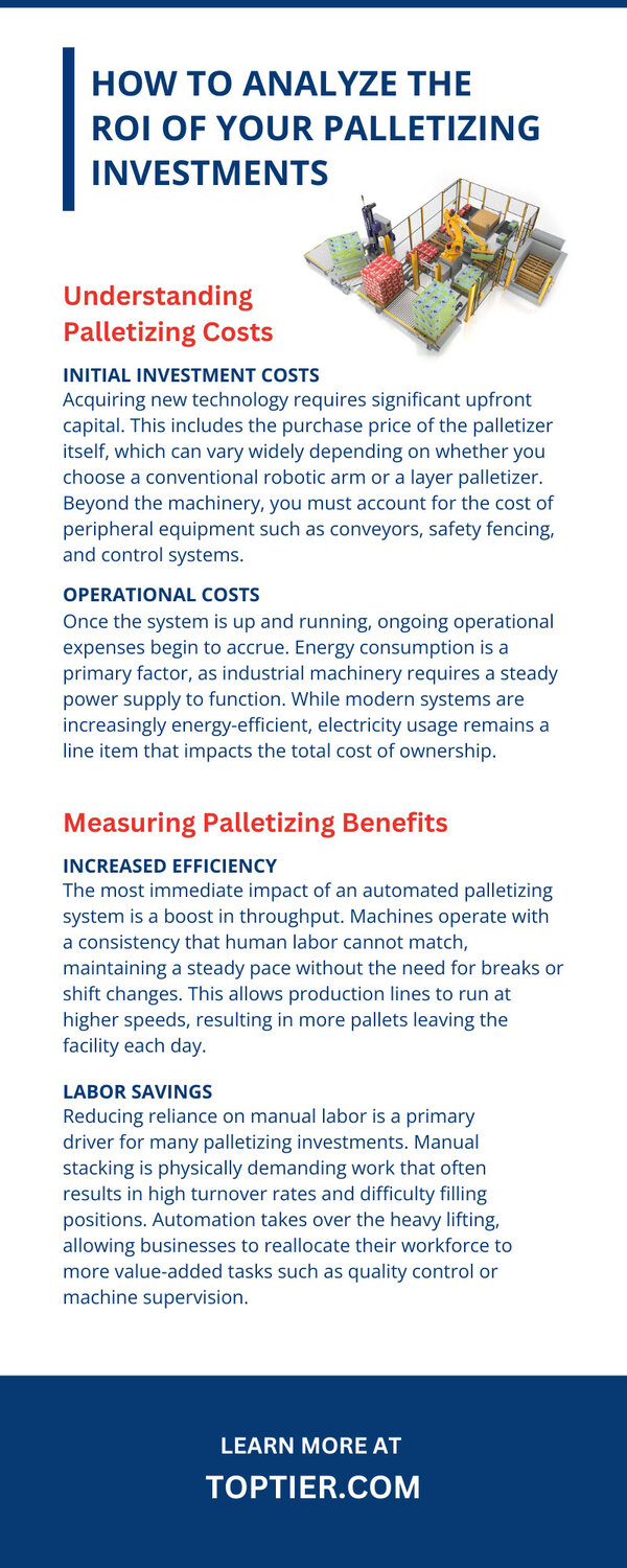 Palletizing, the process of stacking and securing products onto pallets for storage or shipment, is a critical supply chain link. For many businesses, automating this process is a significant step toward modernizing operations and scaling production. While new machinery and increased output are appealing, a sound business decision requires looking beyond the price tag to the long-term value. This is where understanding the return on investment (ROI) is essential. Learning how to analyze the ROI of your palletizing investments ensures that capital is allocated wisely and that the chosen solution aligns with broader operational goals.